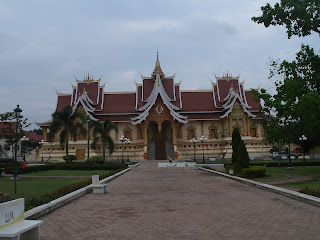 Apparently I didn't actually take any pictures in Vang Vieng; I don't remember if I kept forgetting my camera or if it was refusing to turn on or if I was too demoralized by the bacchanalia around me. So this picture is from a few days later, when I got to Vientiane. It's a pretty modest capital city, and I'm not sure what this building is, but it might be the most ostentatious thing in the city.